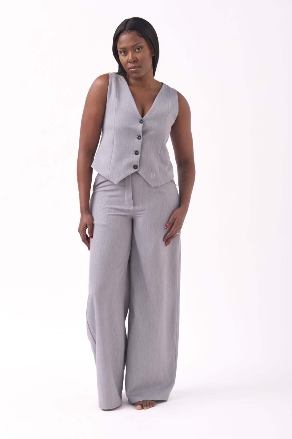 • Gilet ajusté sans manches et pantalon large