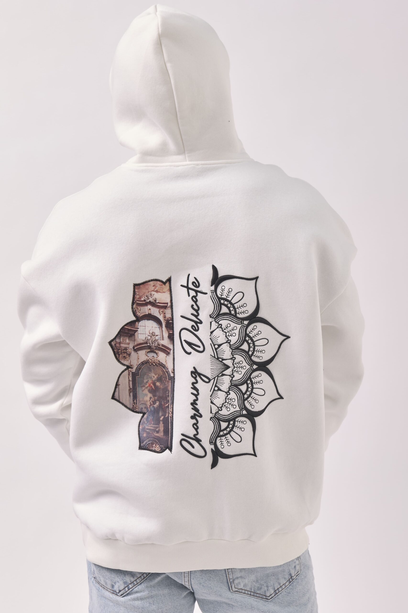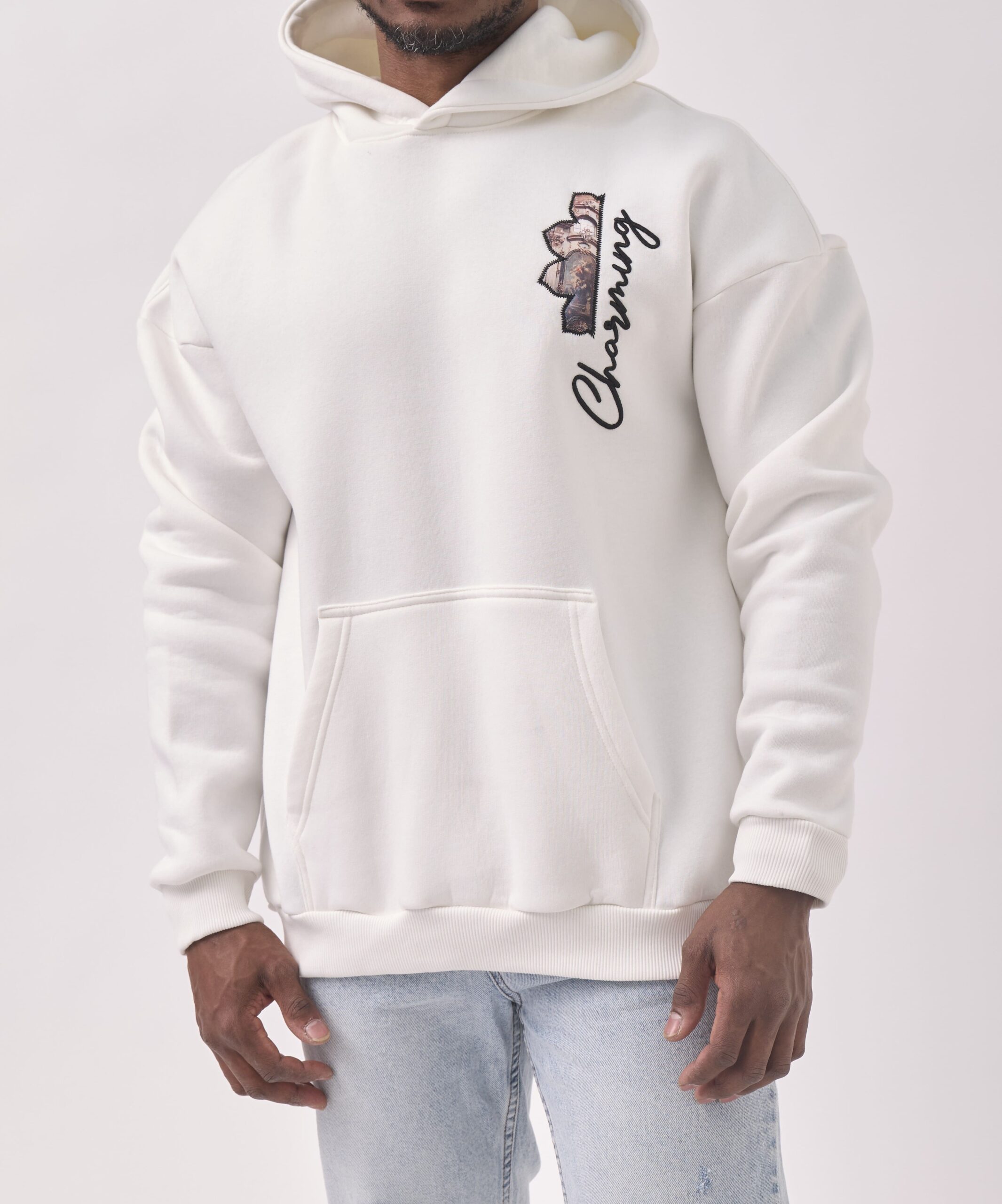 Sweat à capuche rapiécé – Blanc